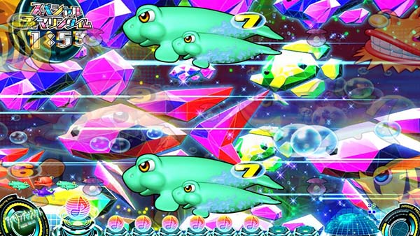 マリンちゃんの踊りにあわせて図柄揃いを狙う。