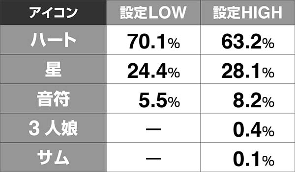 デフォルトのハート以外なら設定HIGHの期待が高まる。
