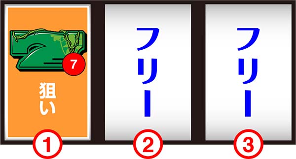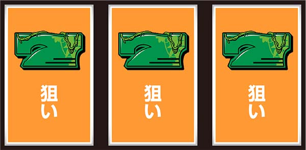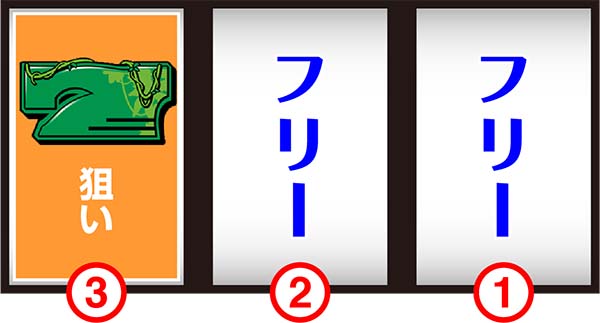 順押しで左リール上中段付近に7番の緑7(上がベルの緑7)をアバウトに狙い、中右リールをフリー打ちしよう。