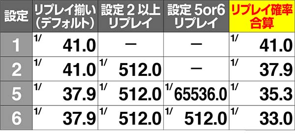 基本的にはリプレイ絵柄が揃うが、それ以外の停止型なら設定2以上確定だ。