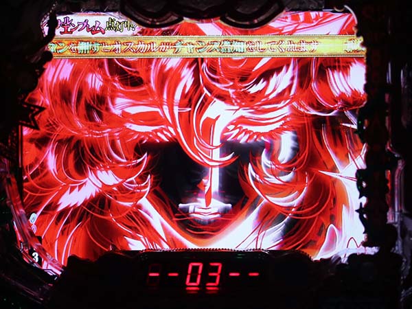 赤文字なら確変大当りの大チャンス、白文字でも途中で赤文字に変化することがある。