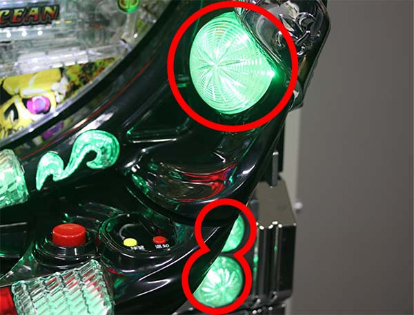 変動開始時にマシンガンのような音とともに枠のランプが高速で点滅する。