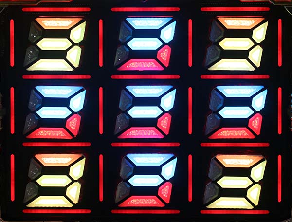 マスに7図柄が止まれば大当りのチャンス。
