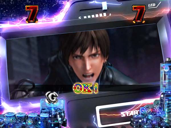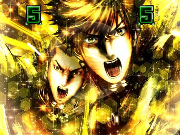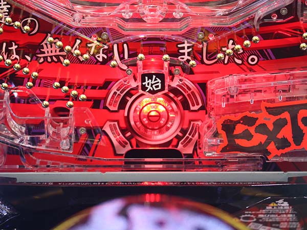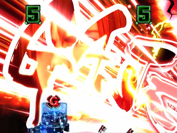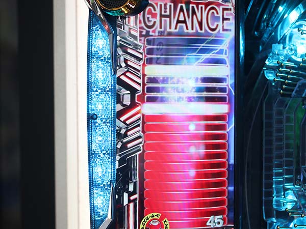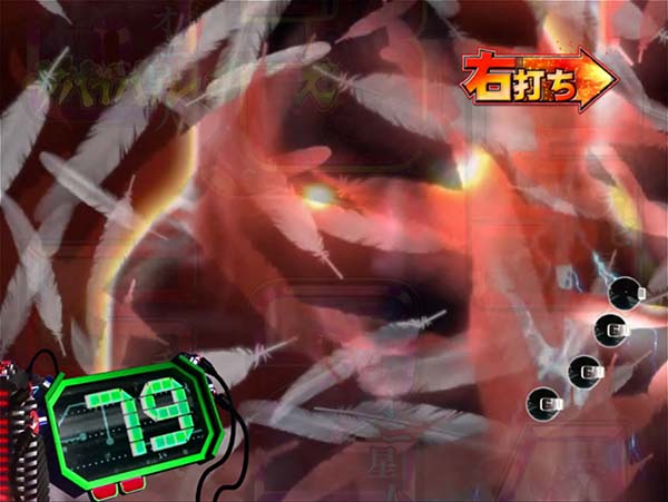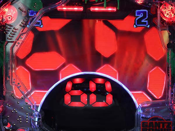 保留入賞時に液晶左右上のガン役モノ、スピーカー、ヘソ下のランプがフラッシュ。