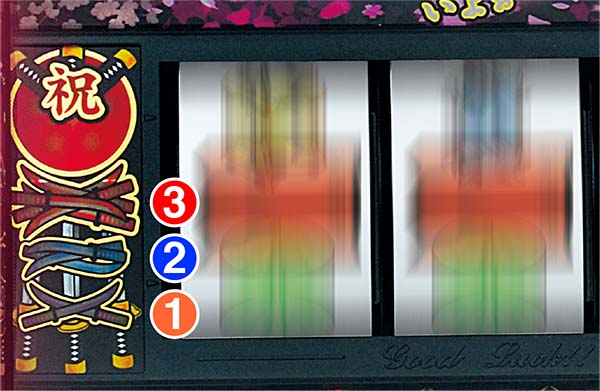3つ目まで到達すれば大チャンス、刀狩り演出中はボーナスに当選していれば小役が途切れた時に祝ランプが点灯するぞ。