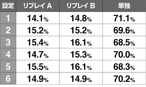 成立役…ハズレ/ベルA・B/リプレイA・B