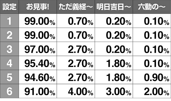 デフォルトとなる“お見事!”以外が発生すれば、高設定のチャンスだ。