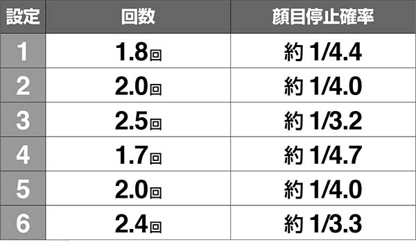 毎ゲーム顔目を狙い、多く止まるほど高設定のチャンスだ。
