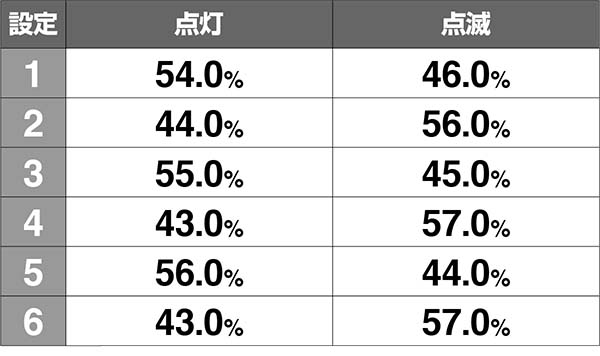 点灯と点滅の2パターンがあり、設定の奇偶を示唆している。