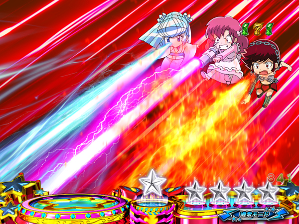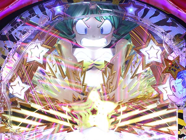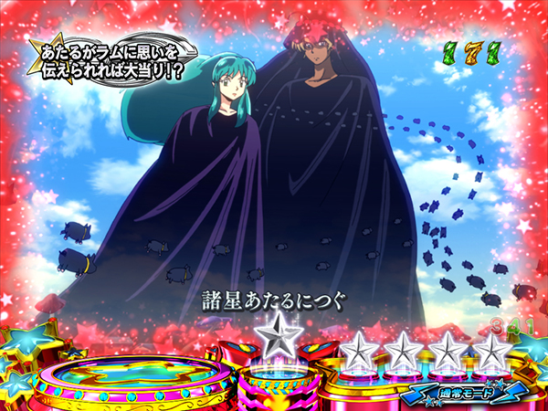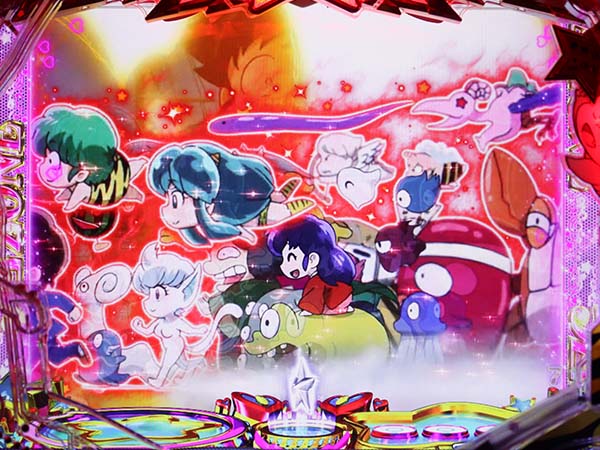 伝説のオープニング曲「ラムのラブソング」をパチンコ初収録!! スペックは継続率82%を誇るロングST仕様となっており、映像は新規作画と3DCGでリニューアルしたオリジナルアニメーションを使用している。 通常時は迫力満点の電撃おしおきギミックをはじめとした、5大電激演出に注目。リーチ後にあらわれる金髪のラムちゃんやニューギンならではのキセル演出など、パチンコでしか楽しめない世界がここに! |