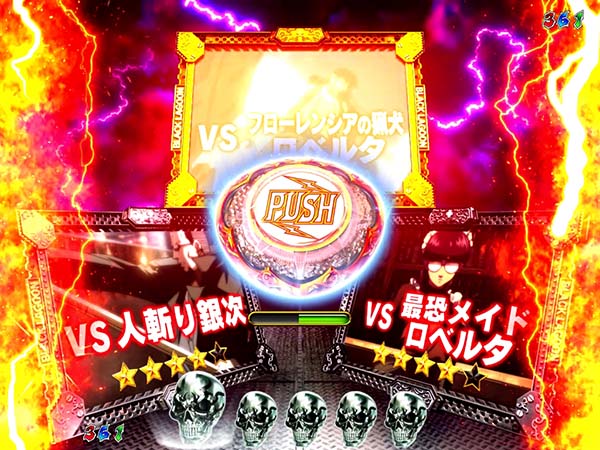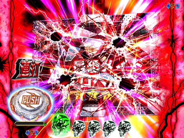 ボタンPUSHで報酬を決め、2回目のボタンPUSHで敵を殲滅できれば確変大当り濃厚!?