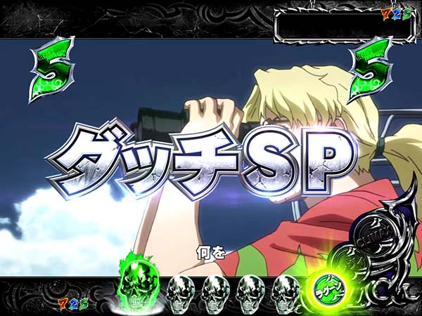 変動中にソードカトラス(レヴィの拳銃)が出現すると発展するハズレor確変大当りの安心リーチ。