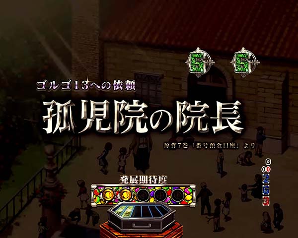 前半はゴルゴ登場をあおり、後半発展で大当りのチャンス。