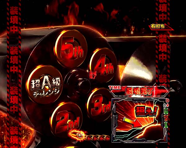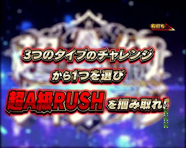 右打ちでVを狙い、告知が発生すれば超A級RUSHに突入する。