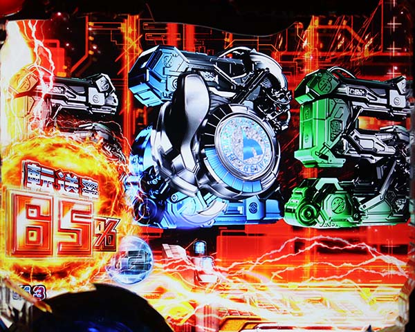 6段階設定を搭載した驚異の連撃マシーン誕生!! スペックは確変リミット10回が付いたV-確変ループタイプ。電チュー経由の大当りの確変割合は92%、リミット到達と時短引き戻しを含めたトータル継続は約95%と、連チャン率の高さが最大の特徴となっている。 迫り来る敵をなぎ倒し、ガトリングのような連チャンを炸裂させよう! |