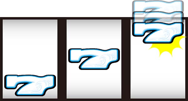 中・右リールをフリー打ちで止めたら左リールに華+白7の2連絵柄を目押し!