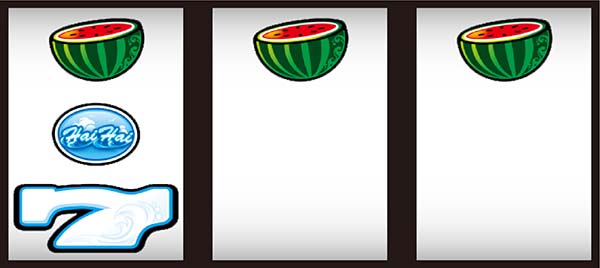 小役とボーナスが同時当選した場合、基本的に第3停止ボタンを離した時にハイビスカスが点灯するのだが“小役の払い出し枚数表示後”に点灯すればBIG確定!