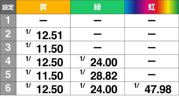 緑なら設定4以上、虹色になれば設定6確定だ!