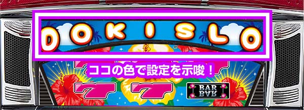 ボーナス終了後に上パネルのロゴ色で設定を示唆する。