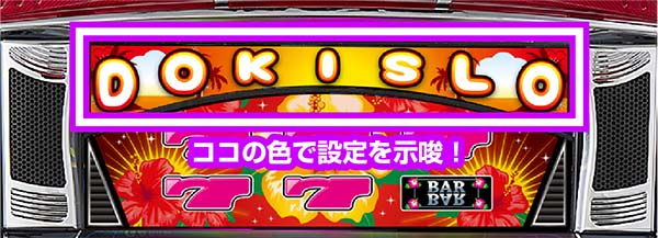 | 機種概要 | 最大ループ率約90%の超ドキドキモードを搭載した『どき!すろ』。通常時はハイビスカスが光ればボーナス確定というシンプルな仕様で、ボーナス後は32G以内が連チャンの大チャンスとなっている。連チャンはモードで管理されており、ハイビスカスの光り方で上位モード滞在を示唆。リール停止音変化やボーナス後のパネルフラッシュなど、設定示唆要素も満載だ。 |