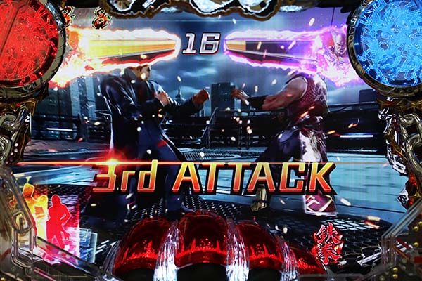 継続率90%の超絶COMBOスペック爆誕!! スペックは大当り後に電サポ100回転が付くシンプルなV-ST機。電チュー経由の大当り「COMBO BONUS」で、ひたすらにCOMBOを積み重ね、大量出玉獲得を目指すゲーム性となっている。 ST中は仁、一八、一美のなかから選択したキャラで演出が変化。迫り来る敵をなぎ倒し、怒涛のK.O.ラッシュをブチかませ! |