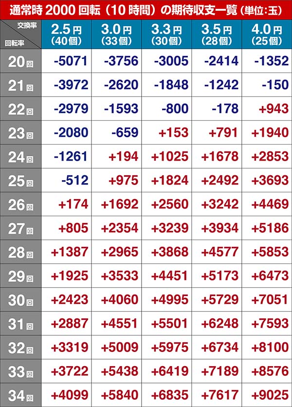 ※電サポ中の出玉増減-10%、通常時10万回転から算出