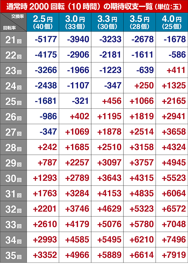 ※電サポ中の出玉増減なし、通常時10万回転から算出