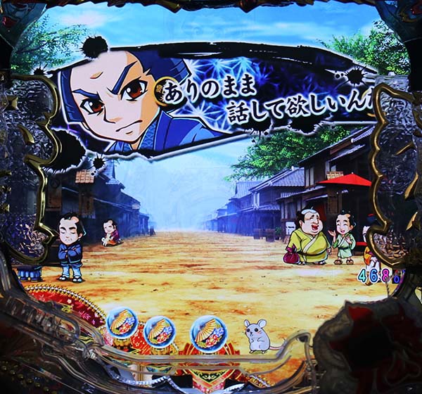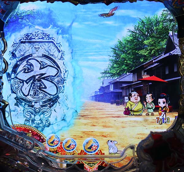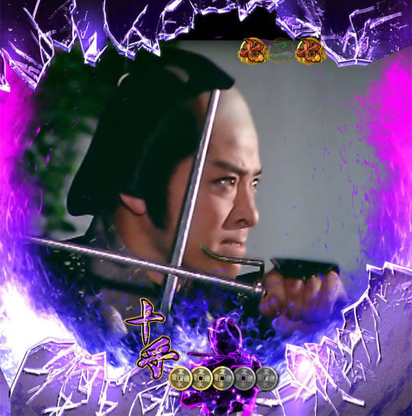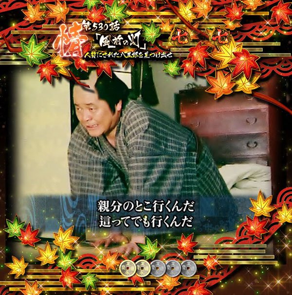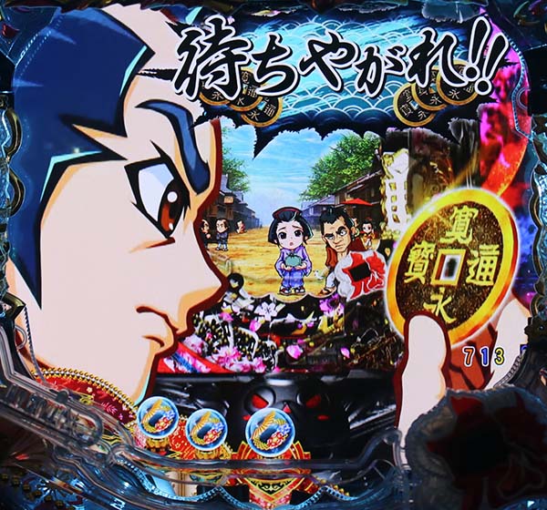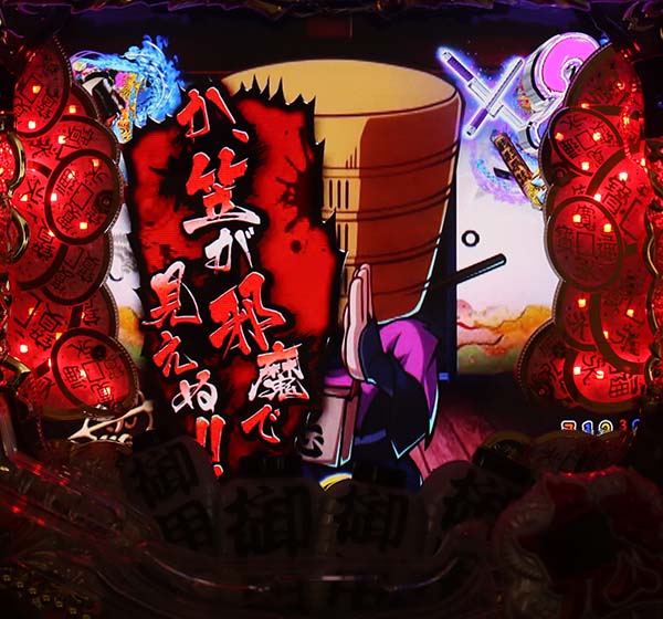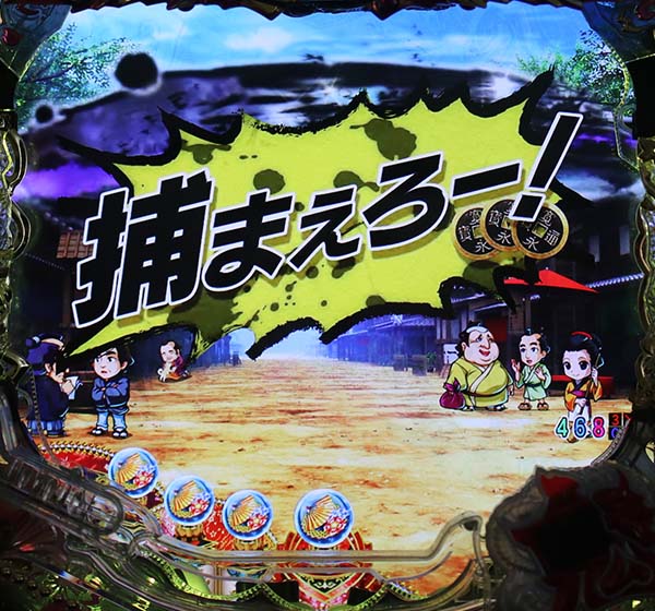 江戸の平和を守るべく、岡っ引きの平次が再び動き出す!! スペックは時短と残り保留で連チャンを目指す1種2種混合タイプで、最大継続率は約81%。初当り後に突入する「鬼斬りチャレンジ」からの大当りが連チャンゾーン「鬼斬りRUSH」突入のメインルートとなる。 演出面で注目すべきはもちろん、平次の代名詞ともいえる「投げ銭」。先読み予告からリーチ中まで、どんな場面でも寛永通宝がチャンスを呼び込む! |