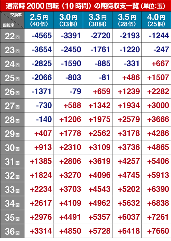 ※電サポ中の出玉増減-10%、通常時10万回転から算出