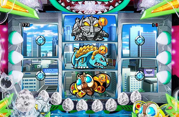 1ラインのゴジラはアルティメットモードになればチャンスアップ。