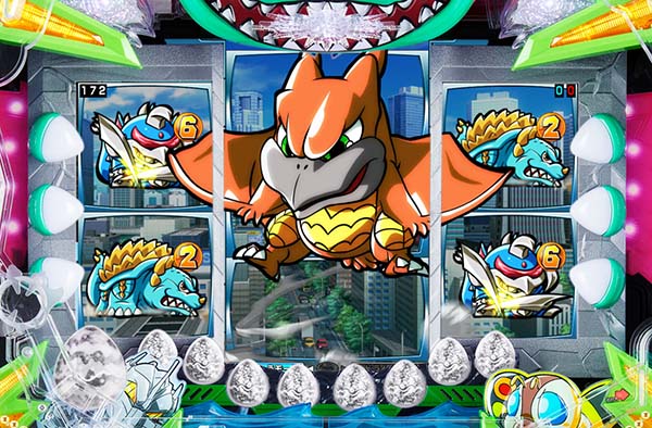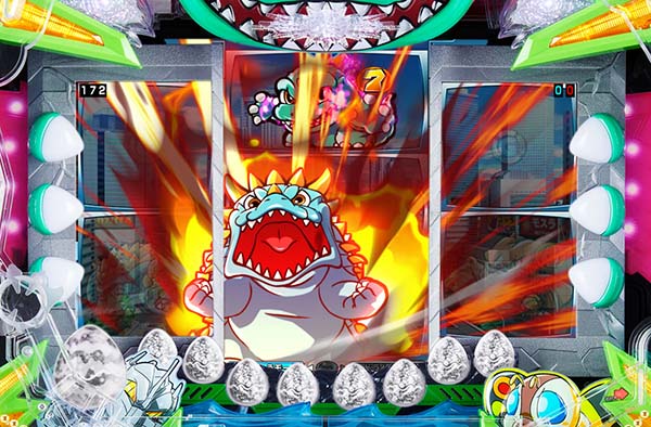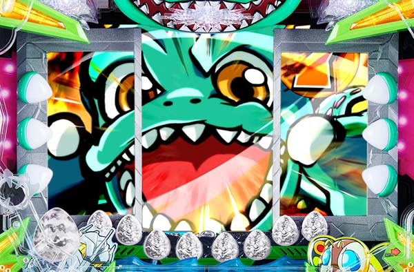 かわいくなったゴジラと怪獣たちが大暴れ!! ST+時短のシンプルなスペックで、大当り後は電サポ100回転の「SUPERチャンスタイム」に突入。前半のST20回転は20年前に登場した初代ぱちんこゴジラの演出やリーチを楽しめるモードとなっている。 キュートなゴジラの演出がメインだが、もちろん3DCGや特撮のリアルなゴジラも登場するぞ! |