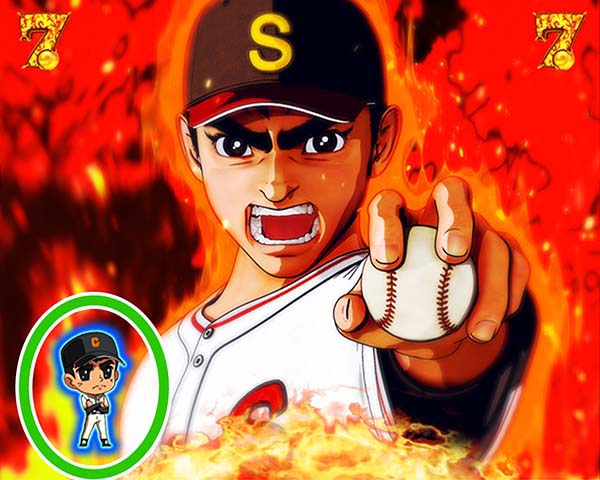 青<緑<赤<サンセイ柄の順に信頼度は高い。上位色ならば、大リーグボール3号の発生に期待できる。