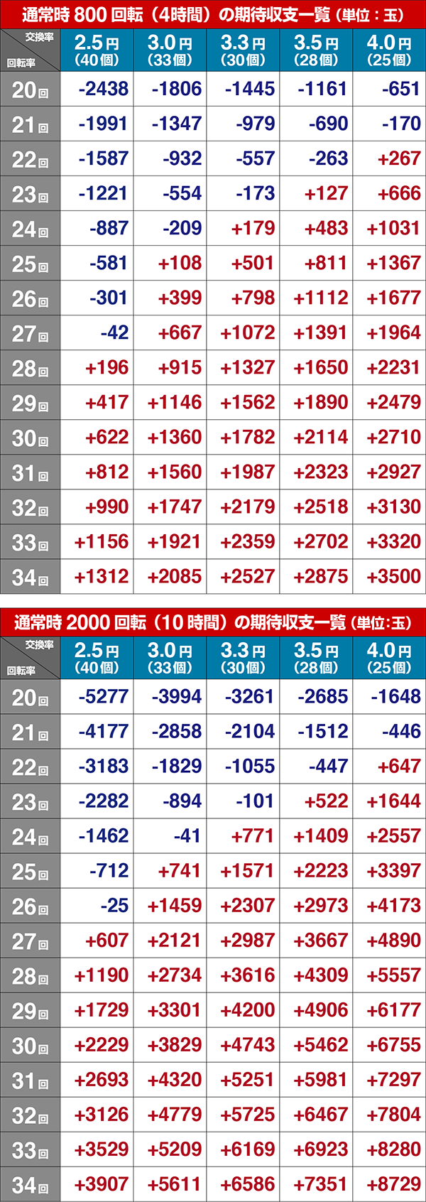 ※時間あたりのプラス個数は交換後の1玉4円換算での値