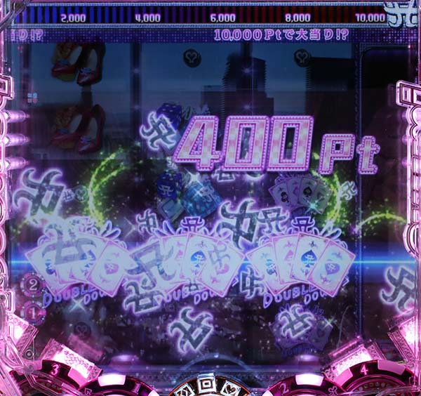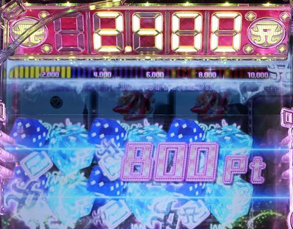 リールにアイテムが揃った場合はポイントを獲得。1ライン揃うたびに400pt獲得でき、先読みや擬似変動でポイントが蓄積していく。