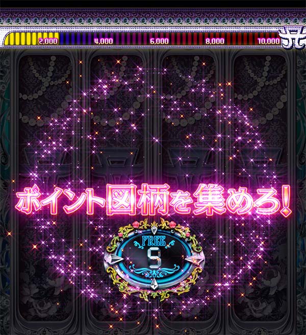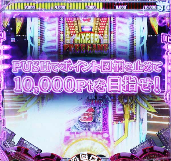 さまざまな予告でポイントを獲得していき、FREE GAME(スーパーリーチ)で10,000pt到達を目指すのが大当りへの王道ルートだ。