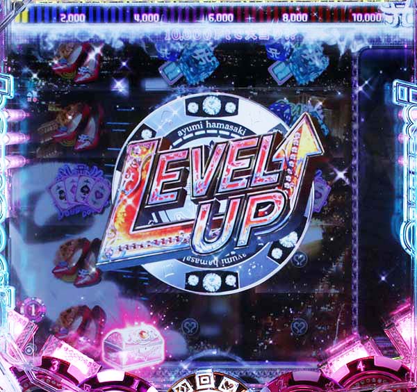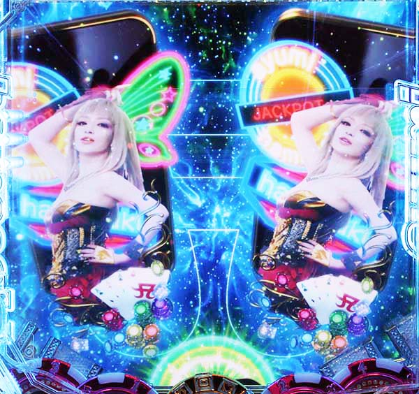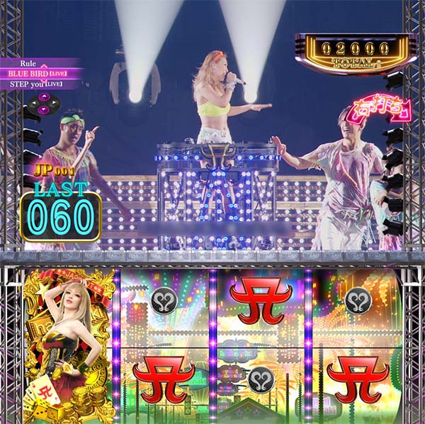 音楽とカジノの魅力が融合した最高のLIVEが始まる!! 小当りと大当りで出玉を増やすV確ST機で、ST継続率は驚異の約95%。初当り後に突入する時短100回転での大当りがST「JACKPOT TOUR」突入のメインルートとなっており、ST突入でLIVE&PV映像を思う存分に楽しめる。 小当り(約1/27.3)or大当り(約1/23.9)当選時に停まるayu図柄が大量出玉獲得のキーポイントだ! |