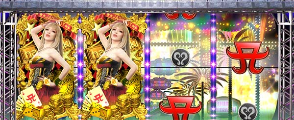 ayu図柄停止をあおる演出に失敗したときなどに出現する4ライン目のリール。