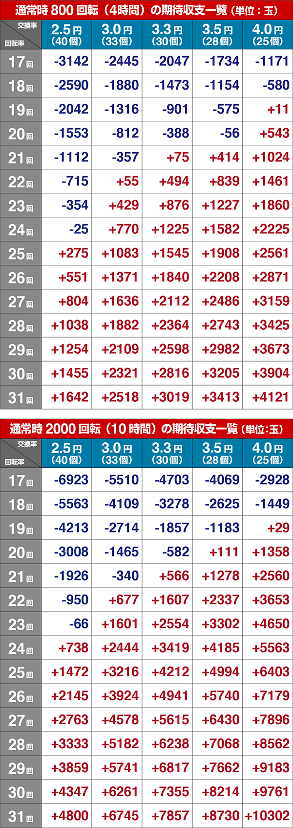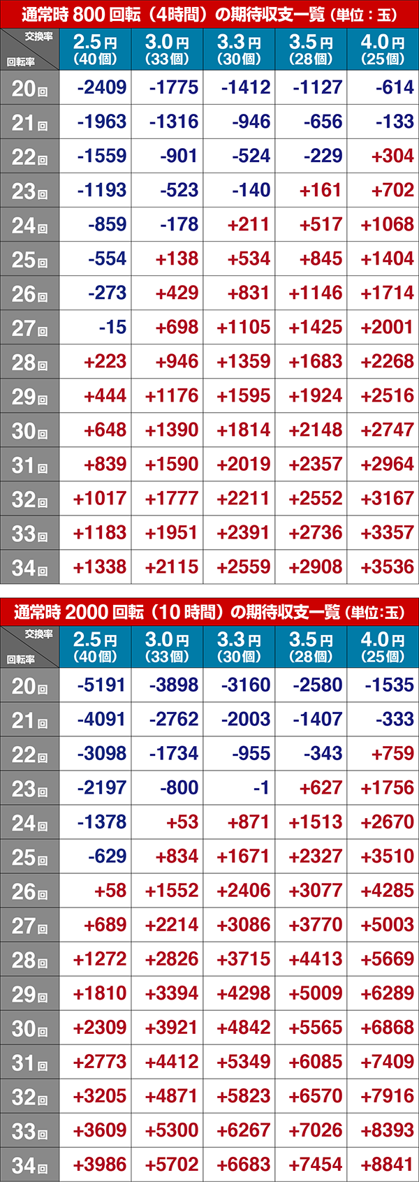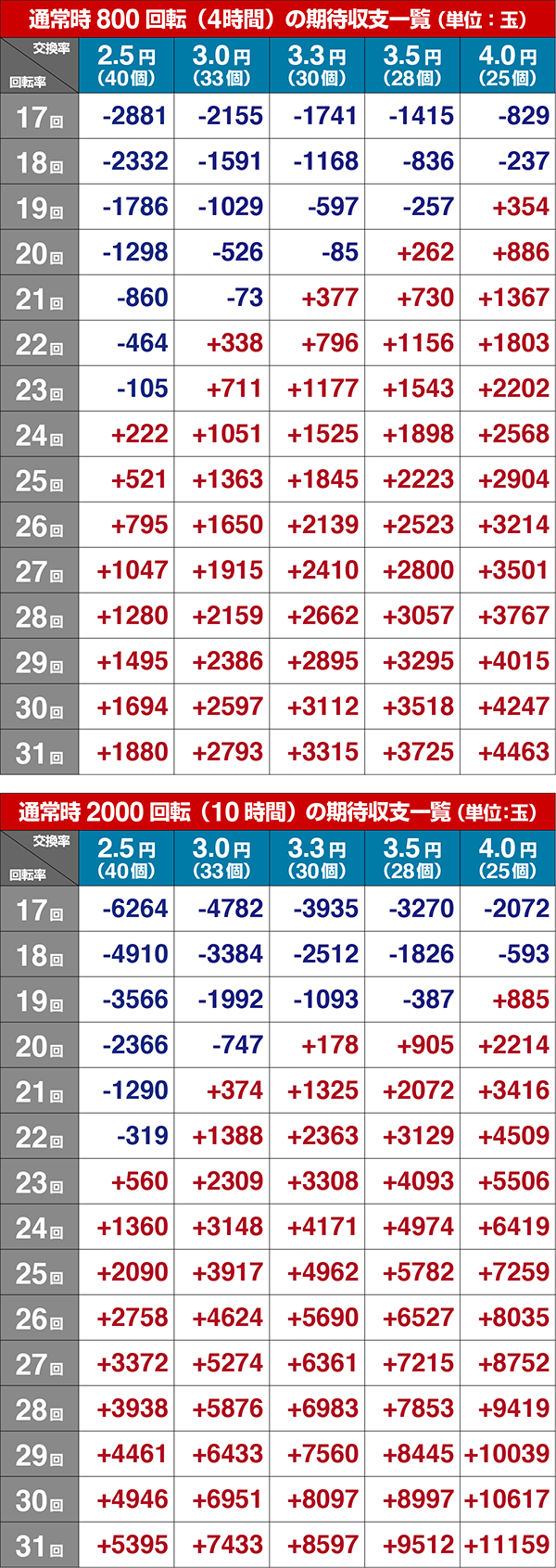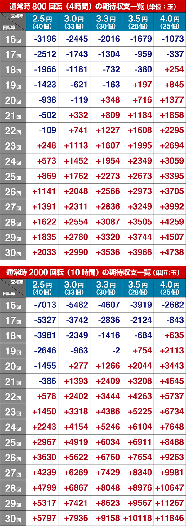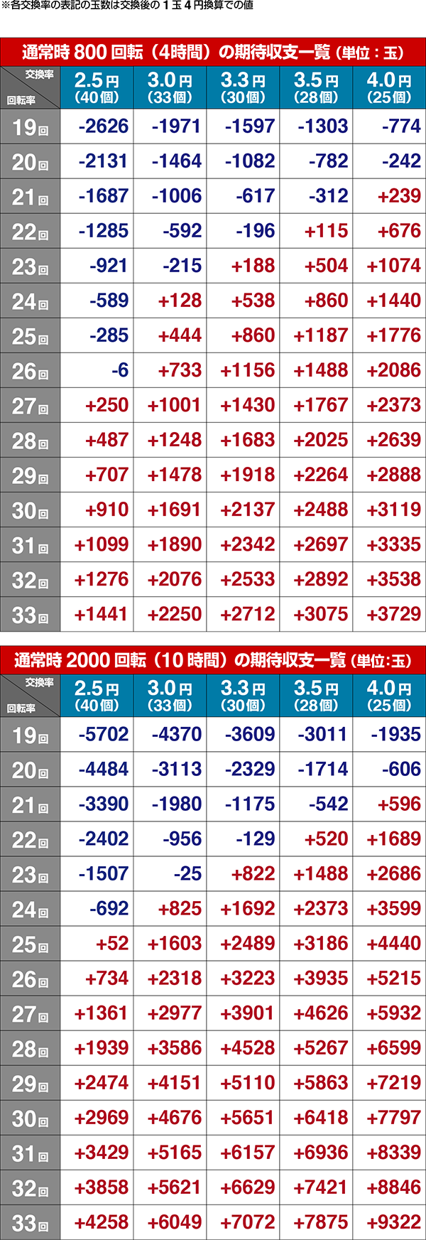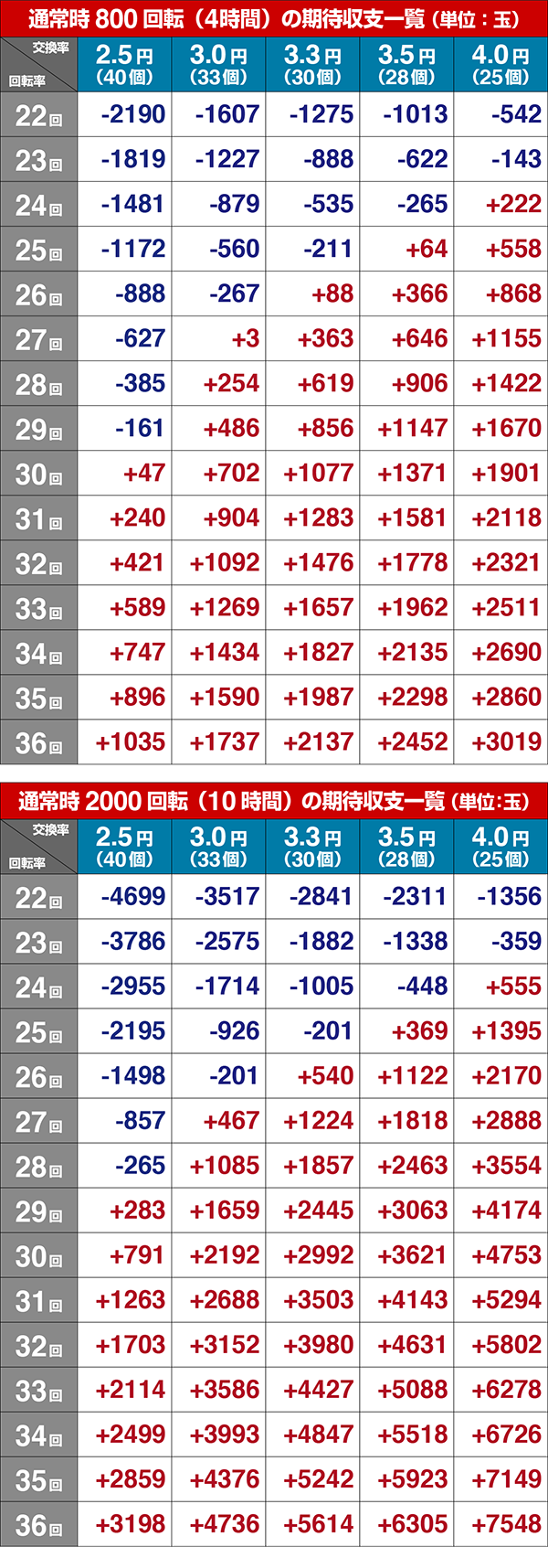 ※電サポ中の出玉増減-10%、通常時10万回転から算出
