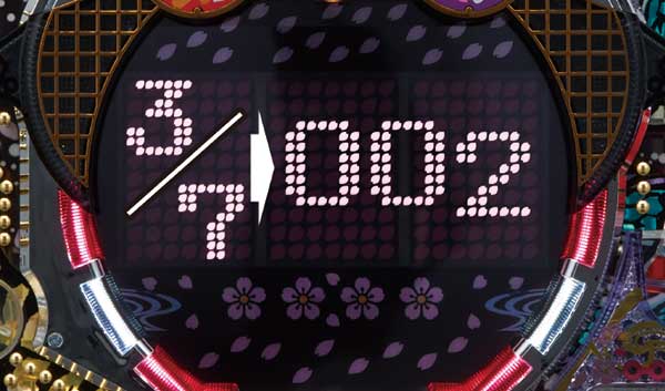 初代「花満開」の2回ループが1種2種混合タイプで蘇る!! 大当りの出玉はALL1000個で、時短突入率は50%。3・7図柄揃いは+2連チャンが濃厚となるツインループとなっており、3・7以外の図柄が2連続で揃うまでひたすら継続する。 演出面では全108種類の超激アツ演出に注目。メインの花びらドットはもちろん、枠や盤面に配置されたランプ類など、あらゆる方法で告知される激アツのサインを見逃すな! |