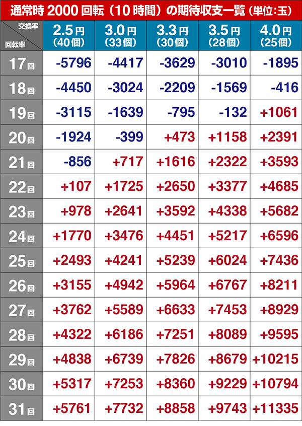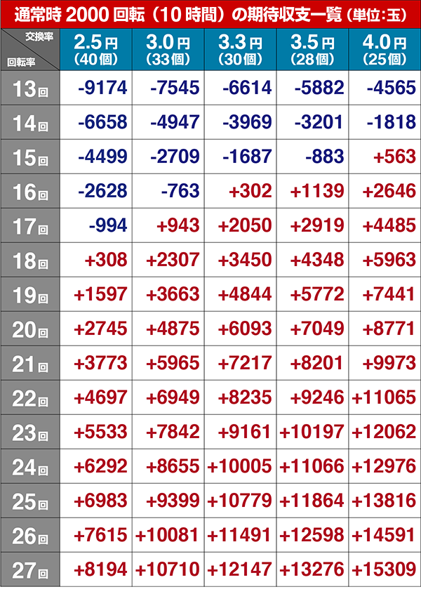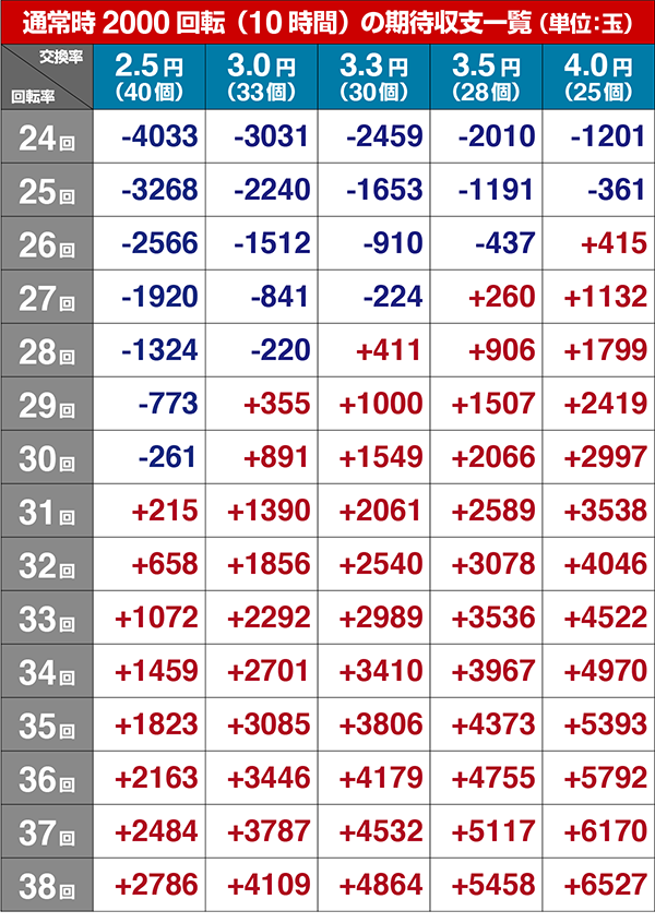 ※電サポ中の出玉増減-10%、通常時10万回転から算出