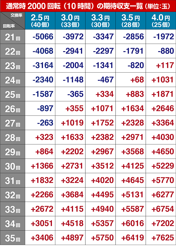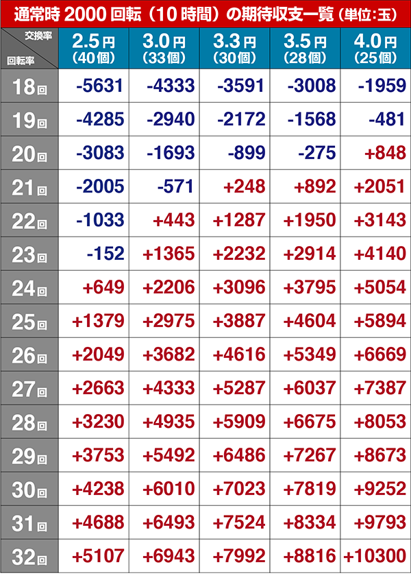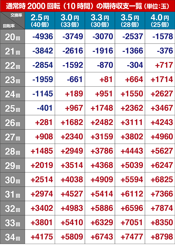 ※時間あたりのプラス個数は交換後の1玉4円換算での値