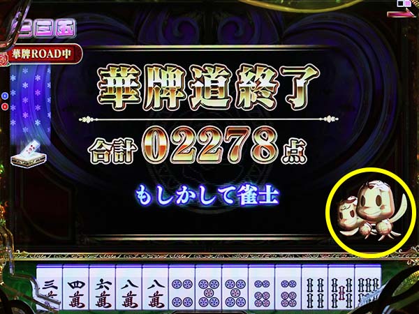 華牌道終了時のリザルト画面に銀や金の楽亀幸亀が出現すると高設定のチャンス。