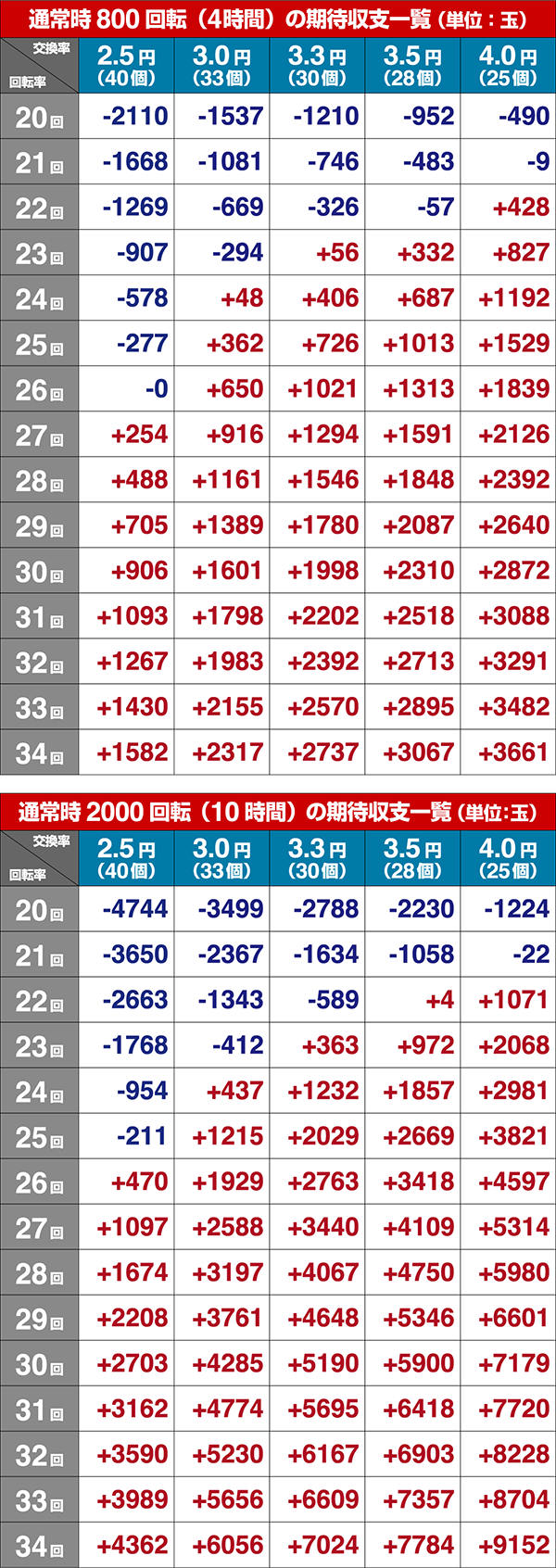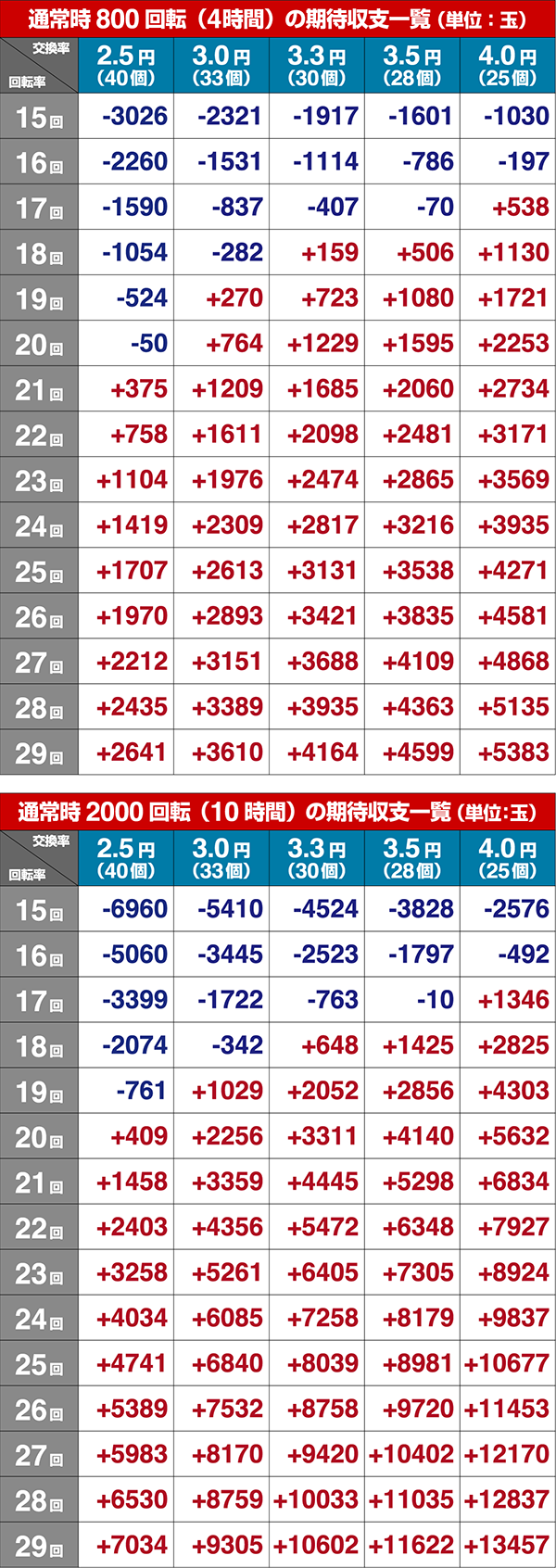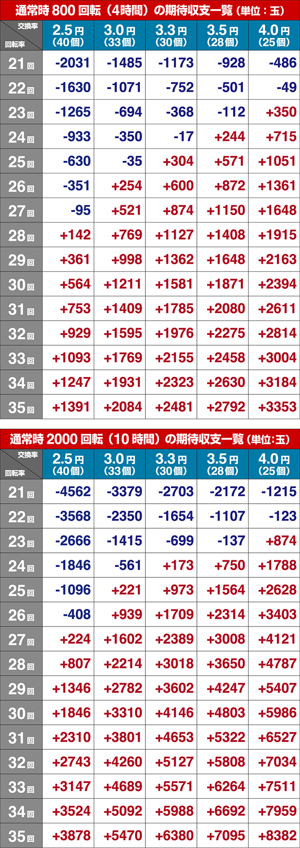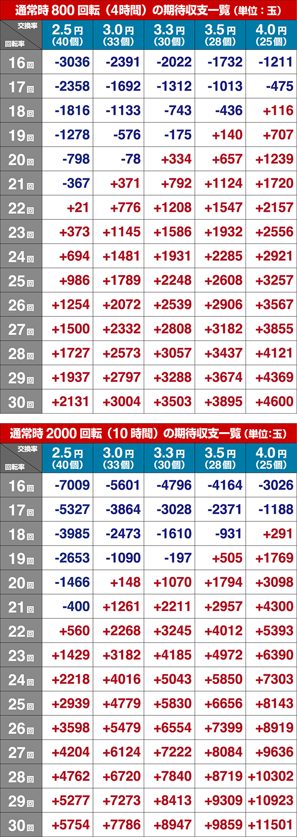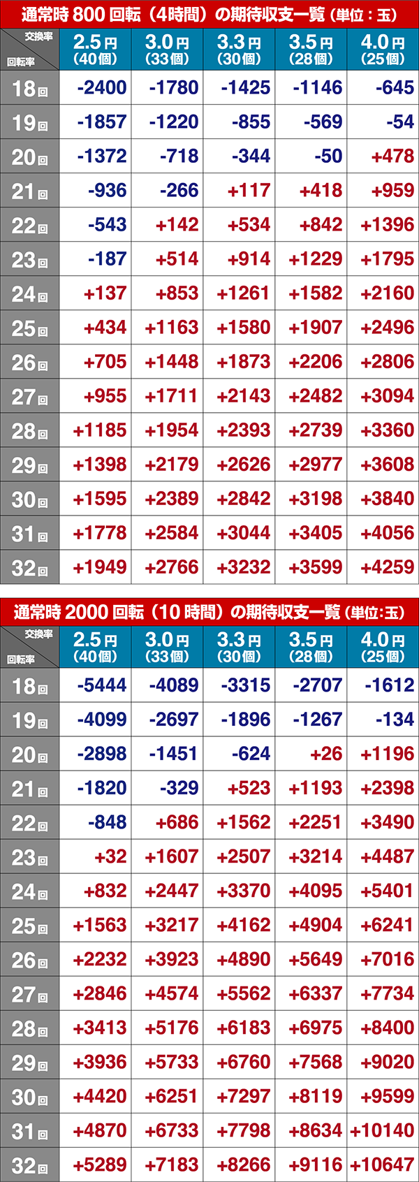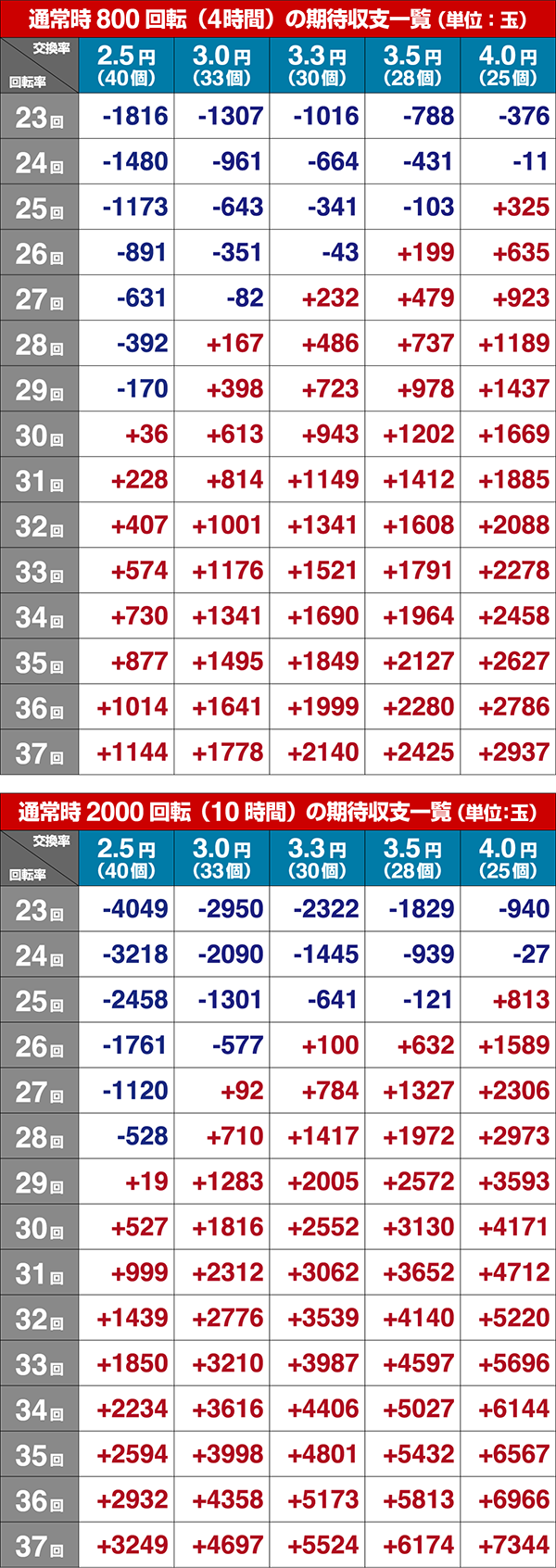 ※電サポ中の出玉増減-10%、通常時10万回転から算出
