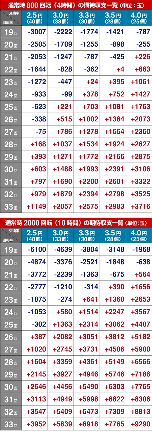 ※時間あたりのプラス個数は交換後の1玉4円換算での値