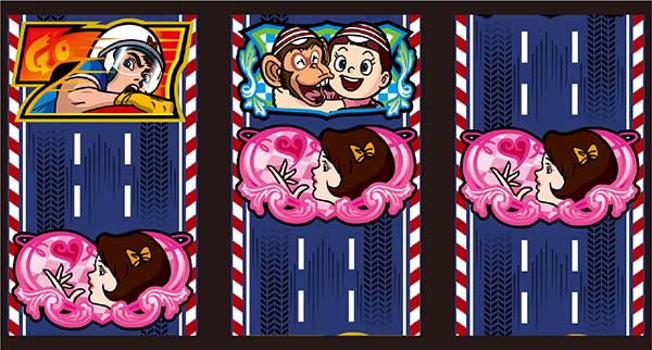 対戦相手は赤い車のゲンゾウはチャンス、黄色い車の覆面レーサーなら激アツ。