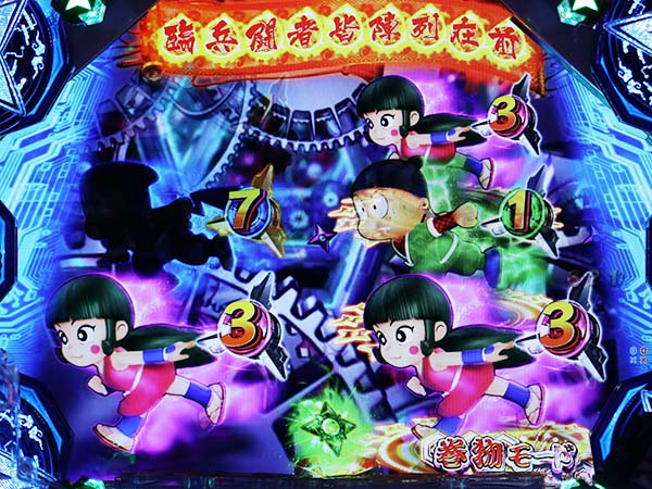 選択したモードで出玉と継続率が変化するように感じられる連チャンモード「超分身システム」が特徴の1種2種混合タイプ。 約1020個が約76%ループする継続率重視の「疾走モード」、約2040個(2セット)が約57%ループする出玉重視の「懲悪モード」とスペックが異なるかのような演出が展開(出玉は払い出し)。 通常時も演出頻度の異なる3つのモードや多彩なギミックを搭載と、どこをとっても変幻自在な1台だ! |