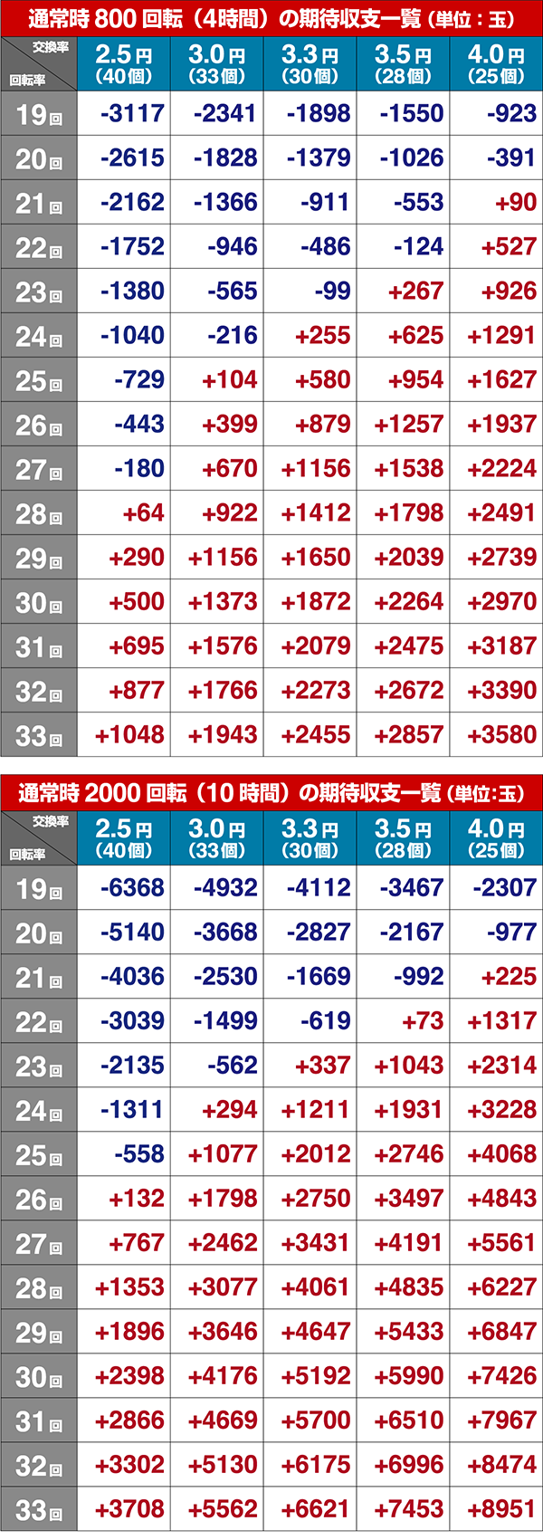 ※電サポ中の出玉増減-10%、通常時10万回転から算出