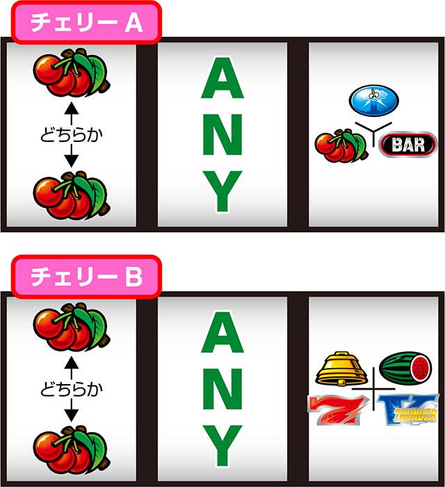 ※チェリーAは右リール中段にチェリーorリプレイorBARが停止