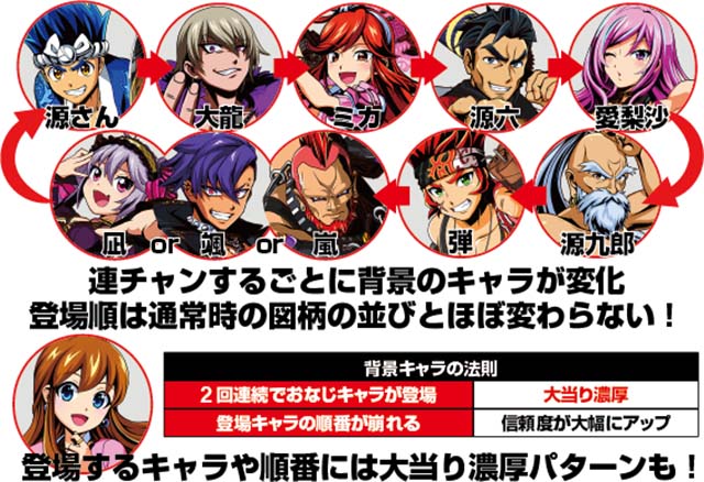 ・アクティブモード…ガセやチャンス系の予告の出現率が上がるにぎやかなモード
