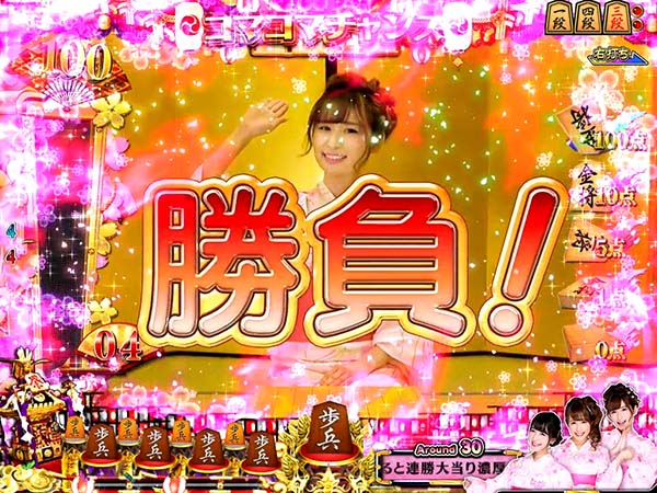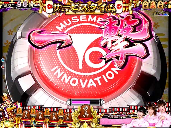 停止図柄がすべて棋娘図柄になればコスプレチャンスに発展。